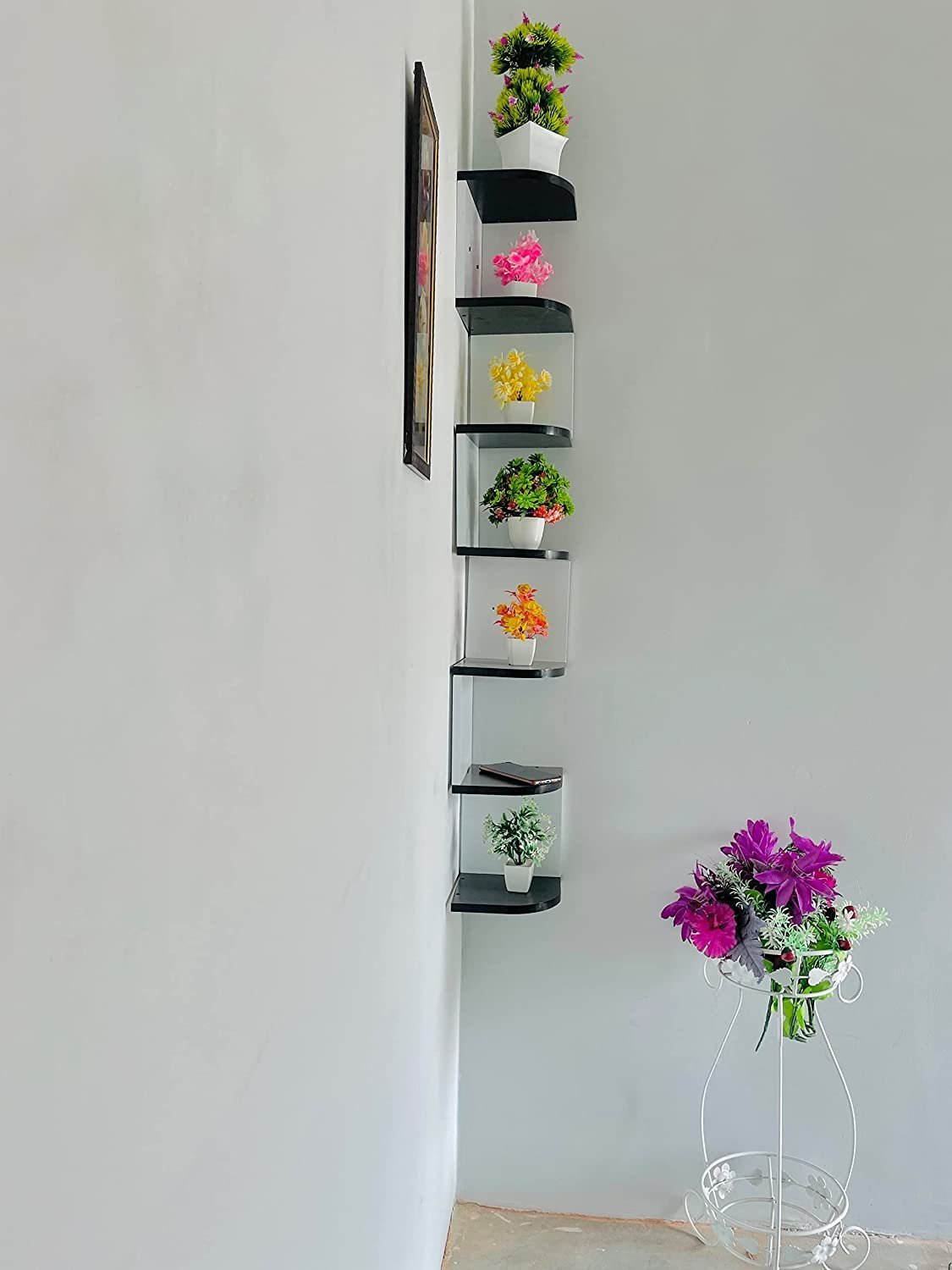 BEWROXIK Zig zag Corner Rack Shelf for Living and Bedroom Decoration Home Decor/Corner Decor (Large, Black/White) MDF (Medium Density Fiber)
