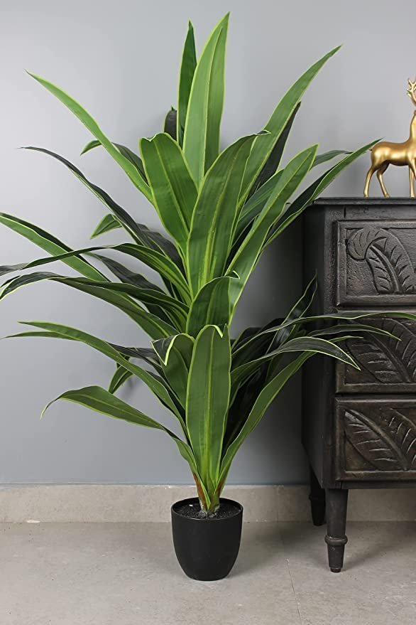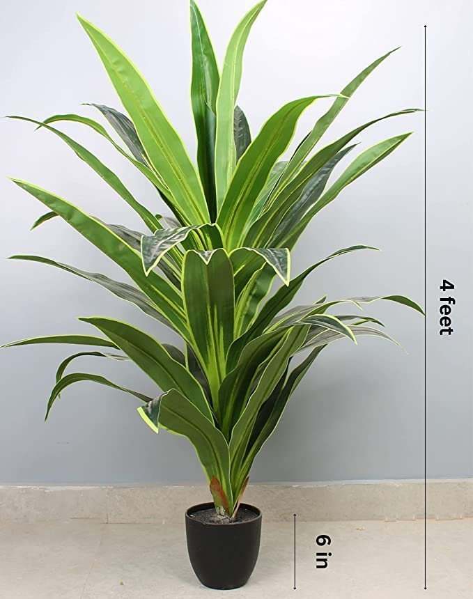 Elemntl Artificial Large Floor Plant with Plastic Pot for Home Decor (Height: 4 feet) | Decoration Items for Living Room | Decorative Table Top Indoor Plants Bonsai for Office (Dragon Plant 4 feet)