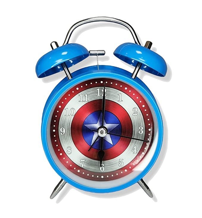 RIANZ Girl’s and Boy’s Metal Twin Bell Super Hero Table Alarm Clock (Blue)